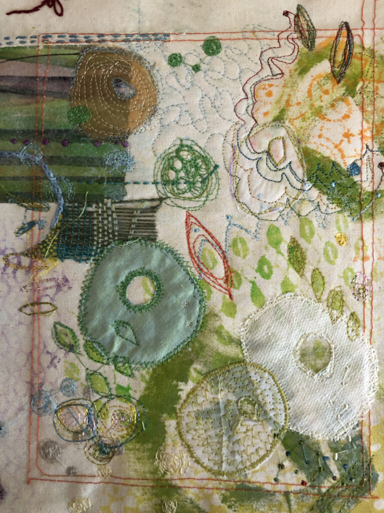 In Ihrer intensive Arbeit im Atelier seit 2011 sucht Zoja Brülisauer nach der Verbindung zwischen abstrakter Malerei und textilen Interventionen. Sie möchte die heutigen textilen Möglichkeiten in die Gegenwartskunst einfliessen lassen. Diese weiblich gelesene Kunst hat bis heute nicht den ihr gebührenden Raum und Anerkennung in der Kunstwelt bekommen.